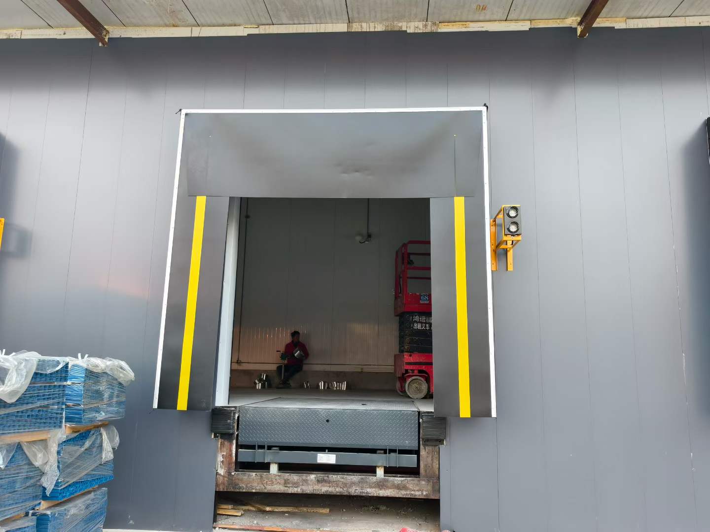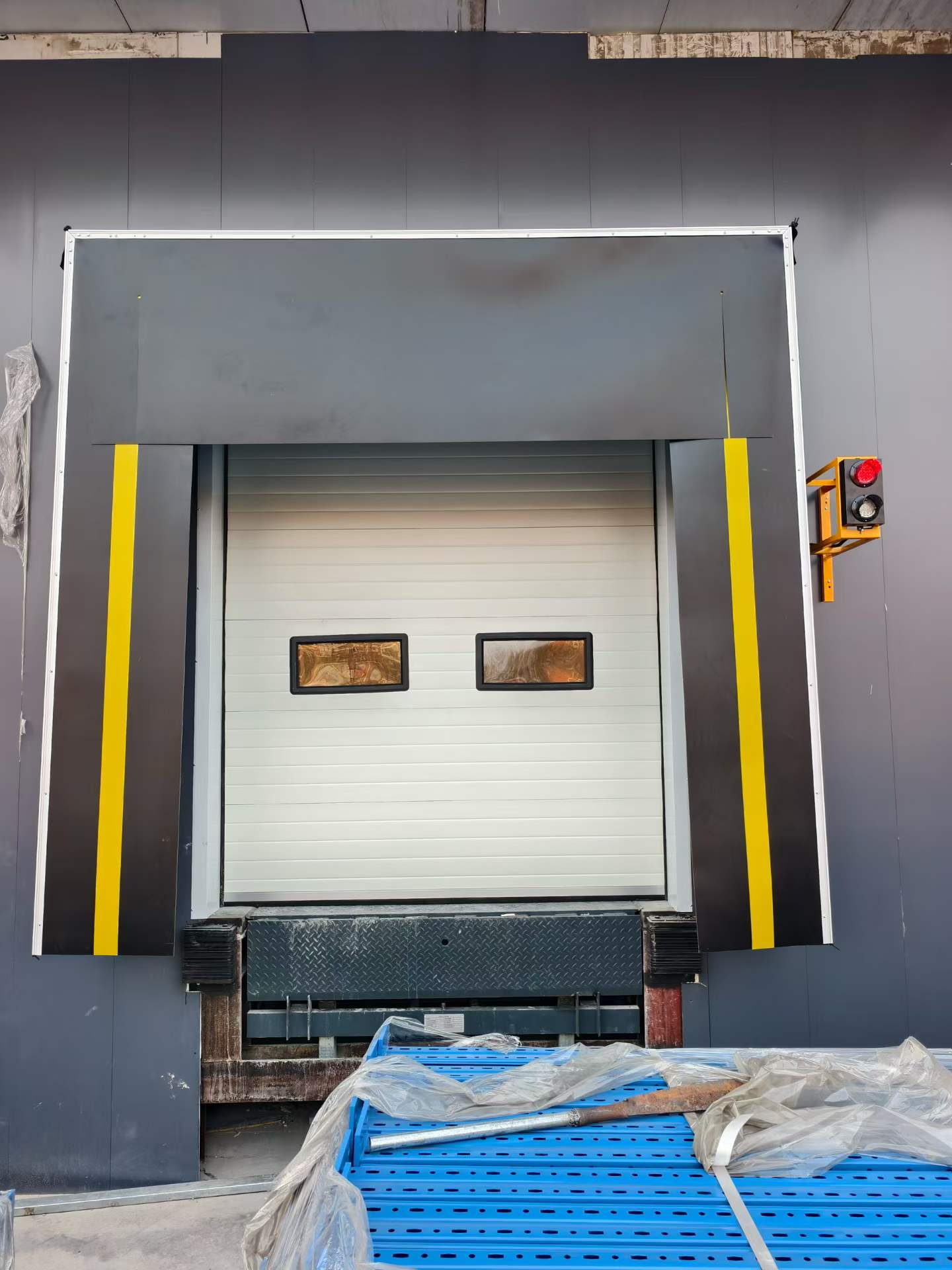 Un sas de quai est un système d'étanchéité installé autour de la porte du quai de chargement, conçu pour créer une zone de protection entre le bâtiment et le camion.